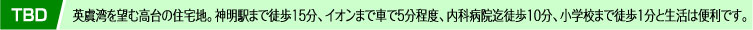 スーパー、個人病院、学校にも近く別荘又は老後の住まいとしても十分楽しめます。英虞湾に近い高台の住宅地で津波の心配はありません。
